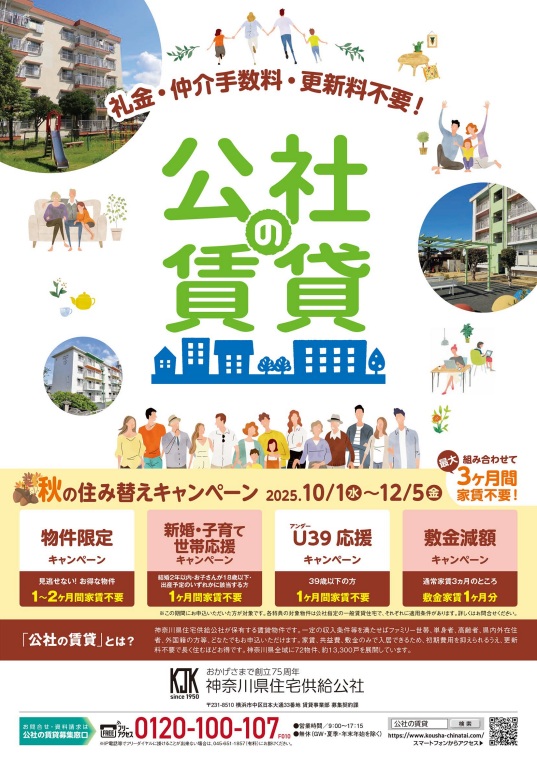 キャペーン情報・最新チラシ Campaign information HOME / お住まいをお探しの方へ / 公社賃貸住宅をお探しの方へ / キャンペーン情報・最新チラシ一覧 / 公社の賃貸『秋の住み替えキャンペーン』 2025年10月1日 公社の賃貸『秋の住み替えキャンペーン』 『秋の住み替えキャンペーン』 ≪2025年10月1日(水)~12月5日(金)お申込み分≫ 最大3ヶ月間家賃不要&敷金減額! ※ キャンペーンには適用条件がございます。詳しくは、お問合せください。 一般財団法人若葉台まちづくりセンター 不動産流通課 フリーダイヤル 0120-1531-85 秋の住み替えキャンペーン.pdf 一覧へ戻る CONTACT 横浜若葉台へのご質問、ご不明点等ございましたらお気軽にお問い合わせください。 お問い合わせ × 検索
