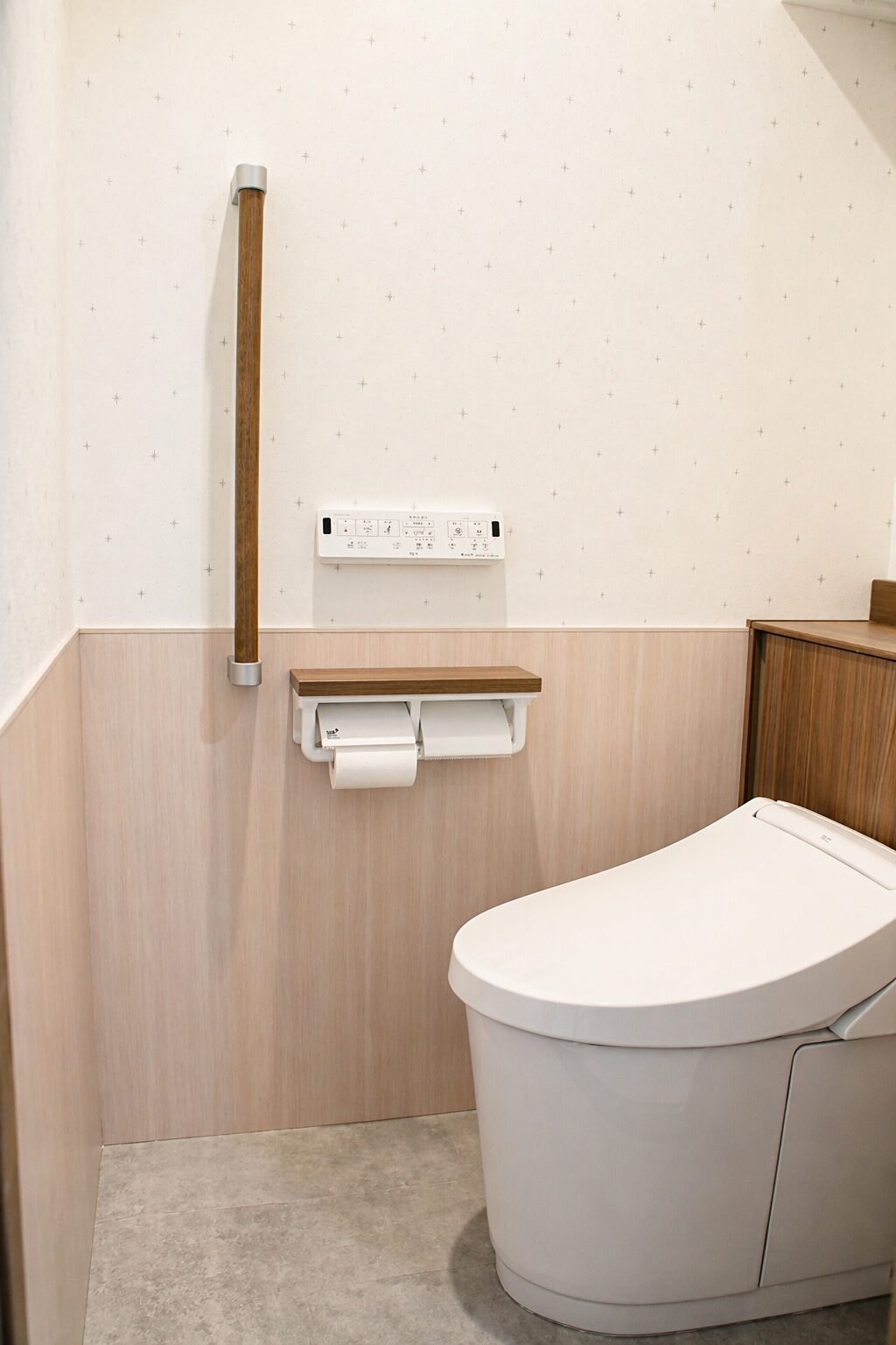 清潔感と機能性を兼ね備えた、上質なトイレ空間へと生まれ変わりました。やわらかな色合いと木目のアクセントが落ち着きを演出し、毎日使う場所だからこそ心地よさを実感できます。使いやすさに配慮した設計で、ストレスのない快適な時間を実現。暮らしの満足度を高めるリフォームです。