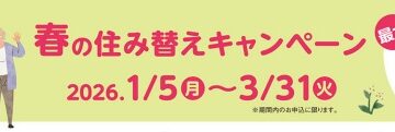 2024年12月22日キャンペーン 公社の賃貸『春の住み替えキャンペーン』 『春の住み替えキャンペーン』 ≪2025年1月6日(月)~3月31日(月)お申込み分≫ 最大3ヶ月間家賃不要&敷金減額!… MORE